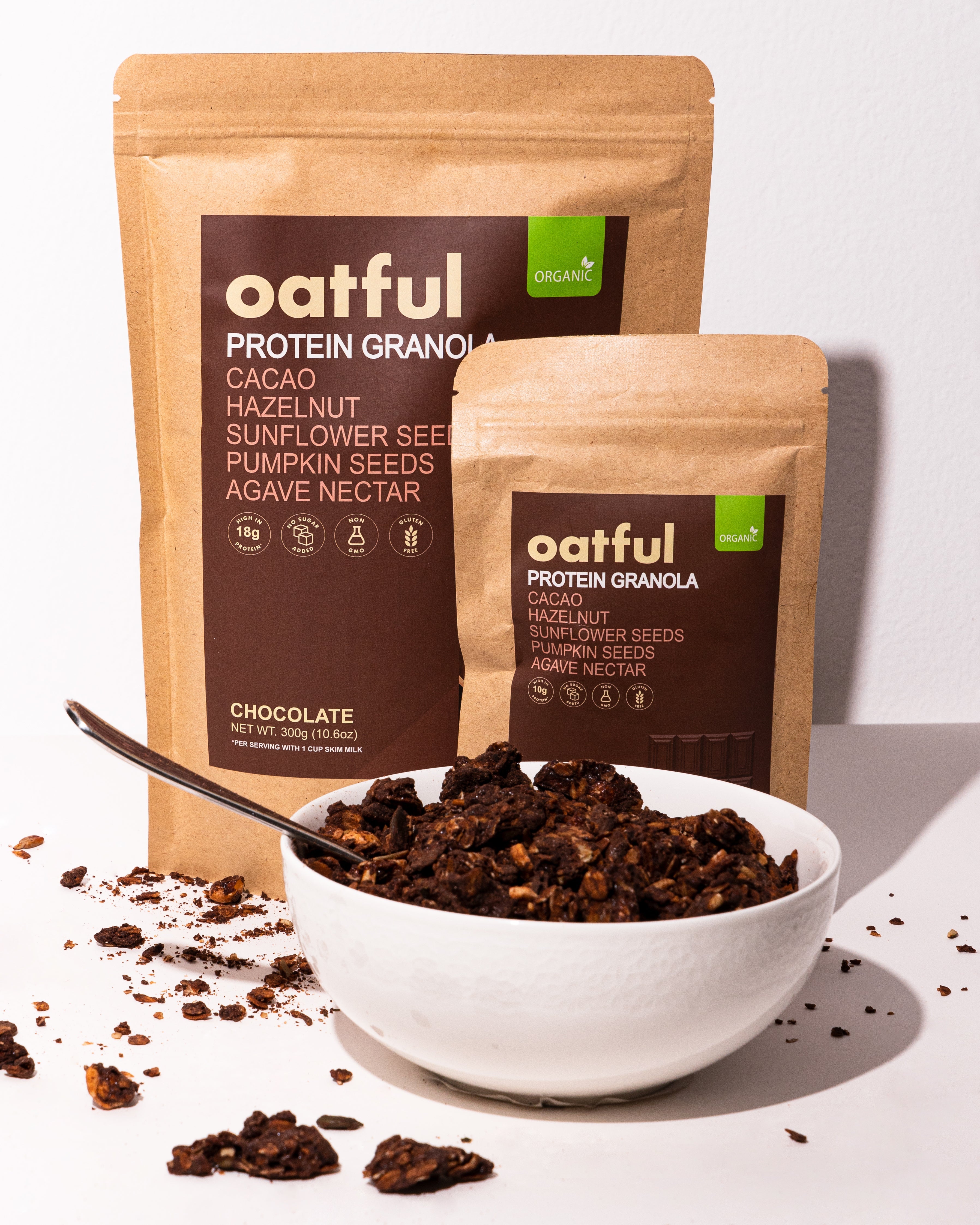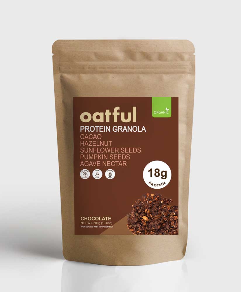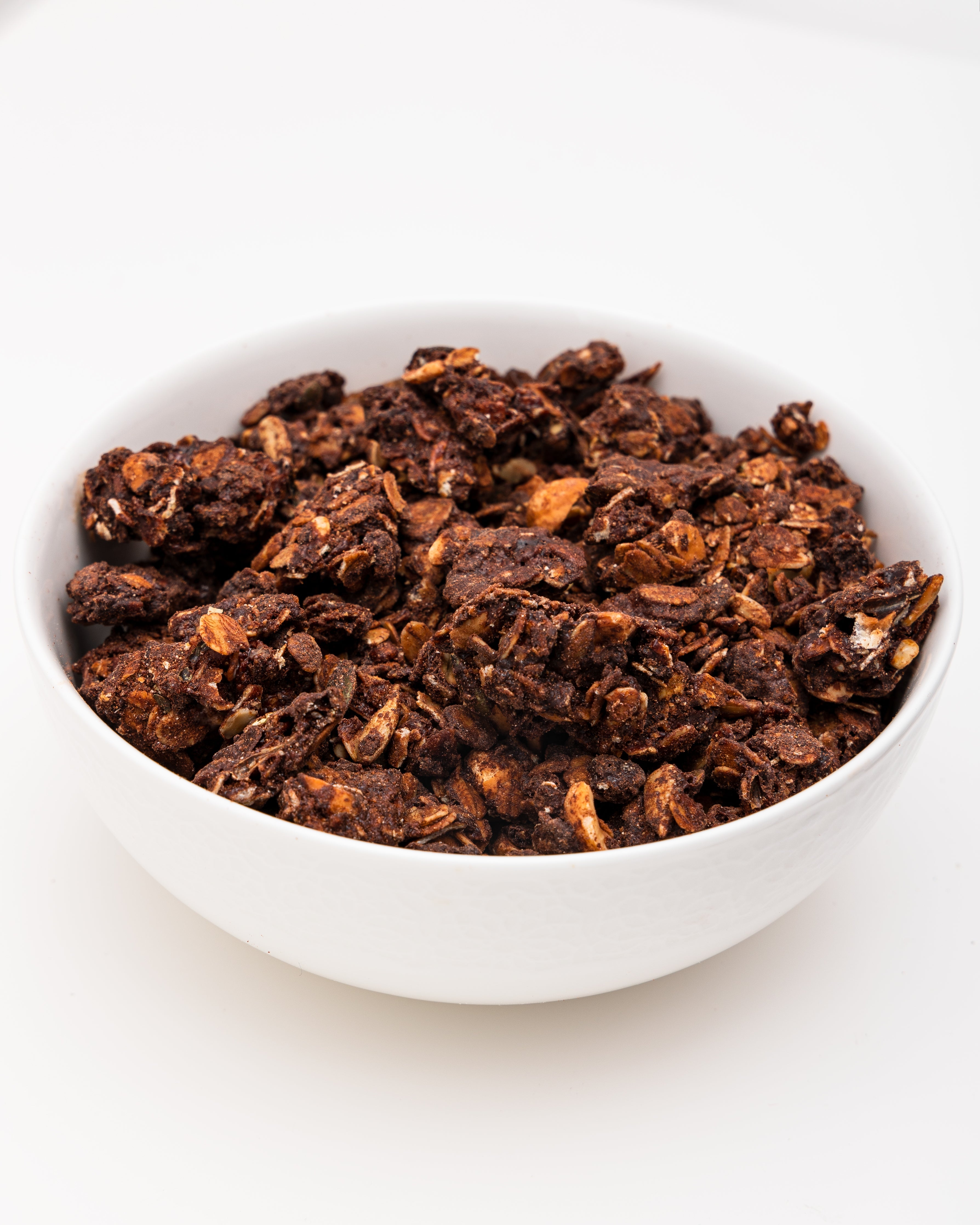 Our Chocolate Protein Granola combines fair-trade milk chocolate chunks and coarse sea salt with ancient grains and superfood seeds for an irresistible flavor and texture. Crunchy and chunky, always.