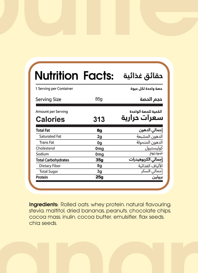 Dessert for breakfast without all the sugar and guilt. The perfect mixture of rich cocoa, peanut butter, real banana chunks, chocolate chips and more. **Tastes like chocolate milk.